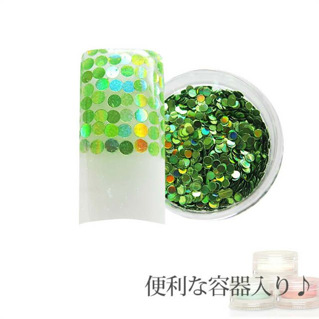 他の画像を見る 容器入り 丸ホログラム パステルグリーン 1.5mm 0.5g (メール便可) 販売価格 ¥ 204 税込 nail for all オリジナルの丸ホログラムに新サイズ1.5ミリ登場♪ カートに入れる お気に入りに登録する